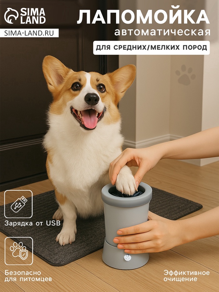 - Удобство и простота: автоматический режим работы позволяет быстро и эффективно очистить лапы питомца без лишних усилий.