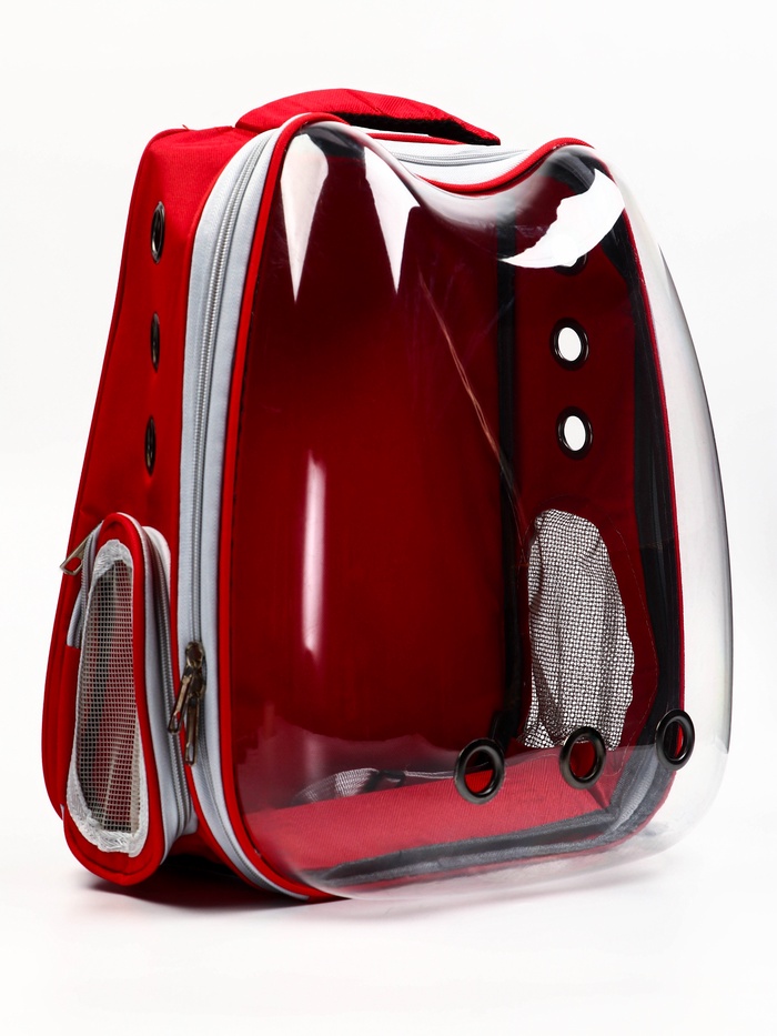 УЦЕНКА Рюкзак для переноски кошек, прозрачный, 32×28×42 см, красный